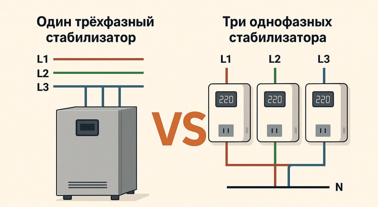 Один трёхфазный стабилизатор vs три однофазных – что выбрать?